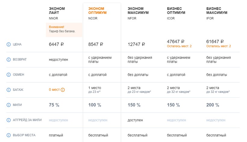 «Оптимум». Помимо ручной клади (также 1 место до 5 кг) вы сможете сдать в багаж 1 чемодан (до 20 кг). Как и в предыдущем тарифе, возврат билета невозможен.