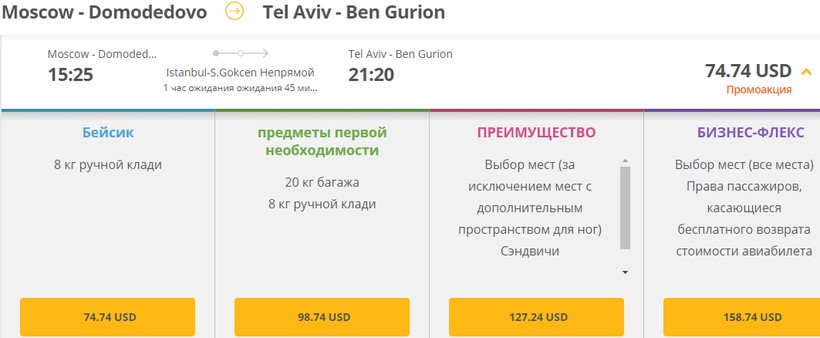 Билеты «туда-обратно» в июле обойдутся вам всего в 7 325 рублей, а в апреле придется заплатить за них не менее 34 297 рублей. В среднем же, долететь до Тель-Авива и вернуться в Москву можно за 23 561 рубль.