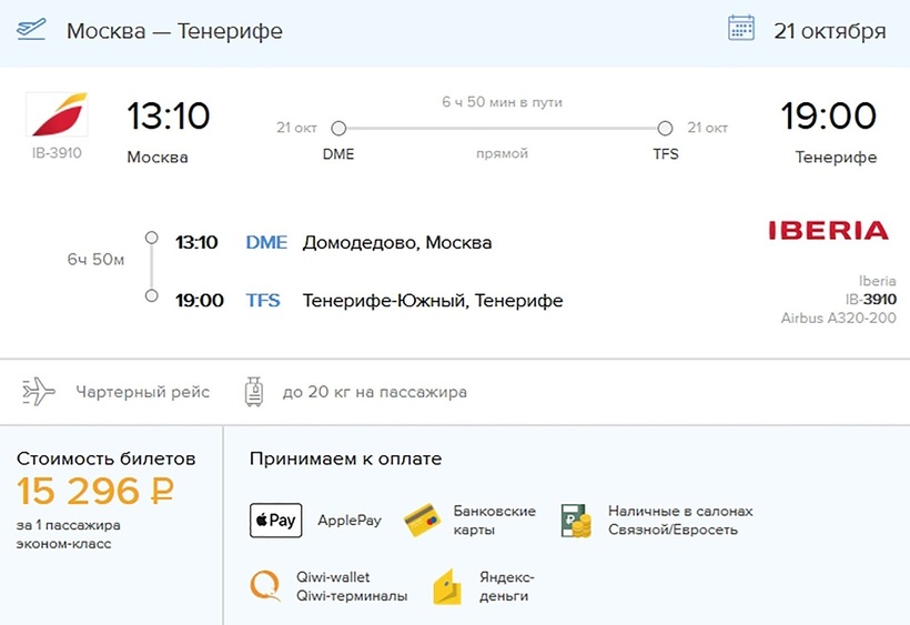 Чартер от Iberia мне не подходил по времени полета, а так это очень хорошее предложение.
