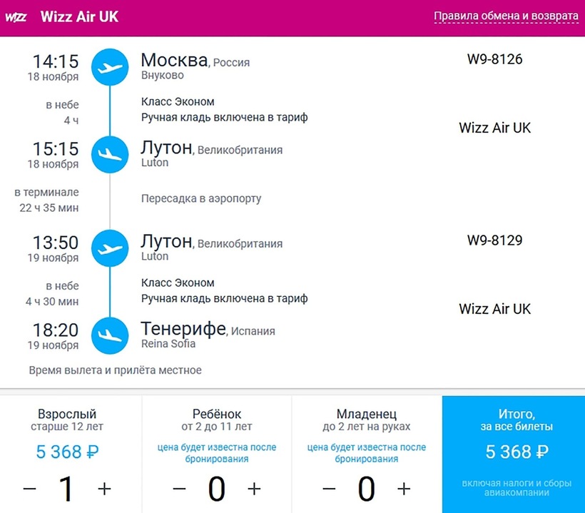 Но пересадка происходит в лондонском Лутоне, там понадобится британская виза. И «окно» между рейсами — 22 часа. А ведь нужно что-то есть, где-то отдохнуть. Какая уж тут экономия. Такой перелет могу рекомендовать тем, кто хочет по пути посмотреть Лондон.