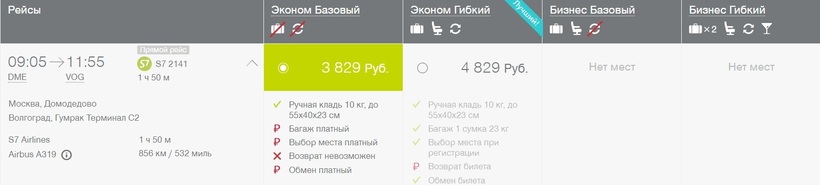 Аэрофлот (SU 1180) Airbus А320 | 07:25 Москва (SVO) | 2 ч. 05 мин | 09:30 Волгоград (VOG) | 9, 10, 14, 15 октября |
