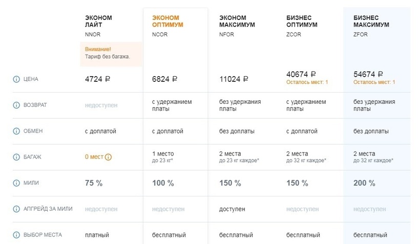Путешествие в бизнес-классе — от 40600 рублей (можно забронировать даже накануне вылета).