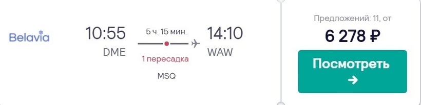 Lot (LO 678) Embraer 195 | 21:30 Москва (SVO) | 2 ч. 20 мин | 21:50 Варшава (WAW) | ежедневно с 30.10 |
