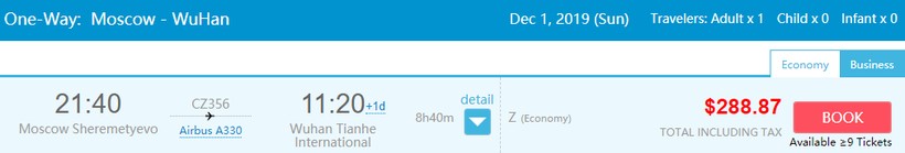 Билеты «туда-обратно» в декабре обойдутся вам всего в 35 646 рублей, а в июле придется заплатить за них не менее 56 701 рубль. В среднем же, долететь до Уханя и вернуться в Москву можно за 43 879 рублей.