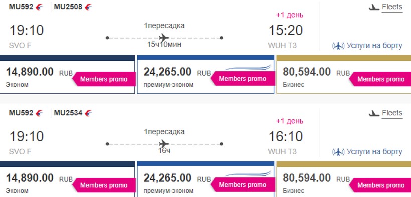 Если обстоятельства не позволяют вам подстроиться под расписание этого перевозчика, то придется лететь со стыковками. В этом случае целесообразнее воспользоваться услугами China Eastern. Перелет с ней займет на полтора часа больше времени, нежели с Air China, зато вы сэкономите несколько тысяч рублей. Конечно, из Москвы в Ухань летают и другие авиакомпании, но добираться с ними менее удобно, а иногда еще и дороже. К примеру, Lufthansa летает с двумя стыковками (во Франкфурте и Пекине), а билеты стоят от 70000 рублей. Не вижу смысла в подобных вариантах.