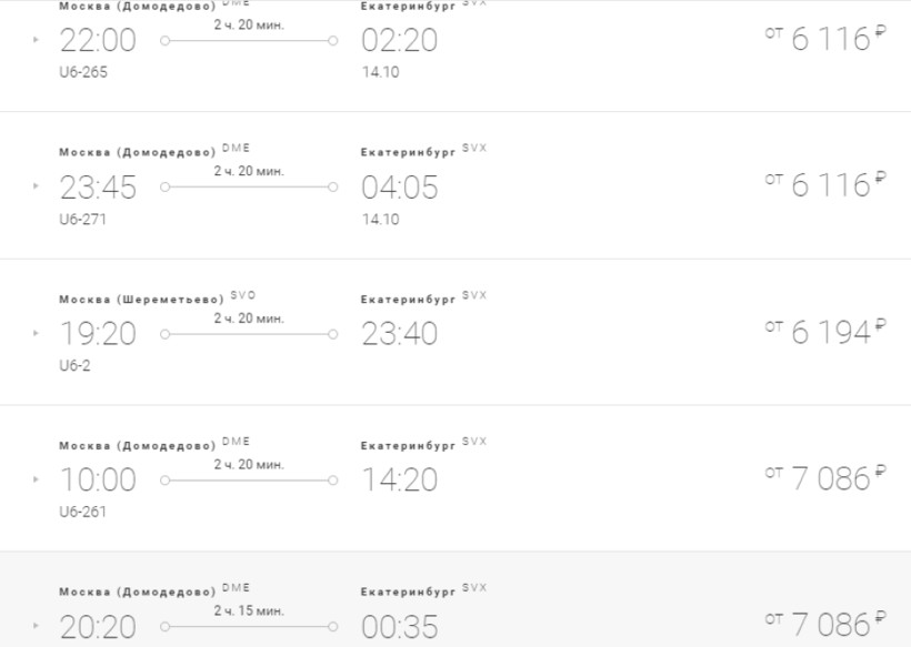 Ural Airlines курсирует из Москвы в Екатеринбург довольно часто — от 4 до 6 раз в сутки.