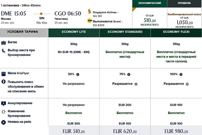 У Singapore Airlines и Scoot расписание рейсов не самое удобное: авиаоператоры совершают полеты только с конца октября по конец марта по вторникам и пятницам. Путешествие с этими перевозчиками получится продолжительным — с пересадкой в Сингапуре в 19 ч. авиаперелет занимает 34,5 ч. Плюс в том, что стыковка дневная, поэтому можно успеть, например, прогуляться в сингапурском парке «Сады у залива» или по набережной Клар-Ки, а также могу посоветовать взглянуть на город с колеса обозрения «Сингапур Флайер». Я рекомендую полет с этими авиакомпаниями потому, что они предлагают недорогие билеты: в одну сторону можно купить (с багажом до 30 кг) за 40500 ₽ (от 500 €), туда-обратно обойдутся от 69000 ₽ (865 €). Тарифа с ручной кладью у сингапурских авиаоператоров по данному направлению нет. Бизнес-класс (доступен только на отрезке пути Москва — Сингапур) — от 186500 ₽ (2370 €).