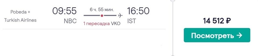 Билеты «туда-обратно» в ноябре обойдутся вам всего в 24 529 рублей, а в феврале придется заплатить за них не менее 33 022 рубля. В среднем же, долететь до Стамбула и вернуться в Нижнекамск можно за 28 230 рублей.