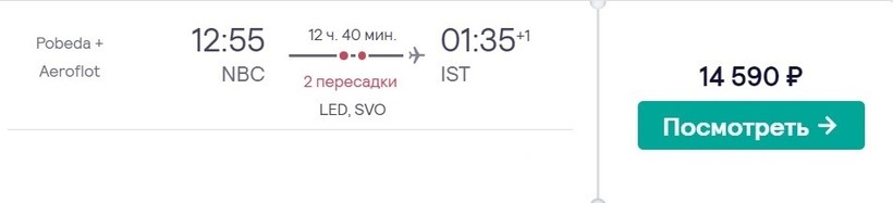 Билеты по выгодным ценам на такие транзитные рейсы найти вполне реально, но из-за количества стыковок путешествие не будет приятным. Так что, такой вариант рекомендую рассматривать исключительно в том случае, если на нужные даты не найдете бюджетные авиабилеты на рейсы с одной пересадкой. Например, можете полететь с авиакомпаниями «Победа» и «Аэрофлот» через Санкт-Петербург и Москву.