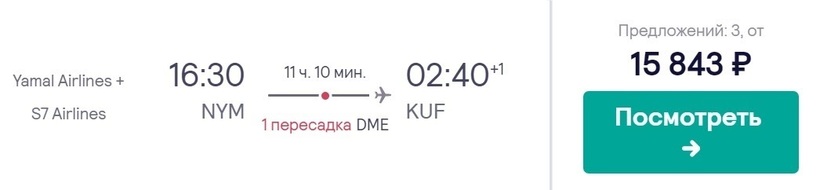 Также у «Ямальских авиалиний» есть совместный рейс с S7. Но это менее популярный вариант, чем предыдущий. На это есть две причины. Во-первых, время в пути более продолжительное — 11 часов (стыковка в московском аэропорту Домодедово продлится 6 часов). Во-вторых, более высокая стоимость авиабилетов — от 15800 рублей (за две недели).