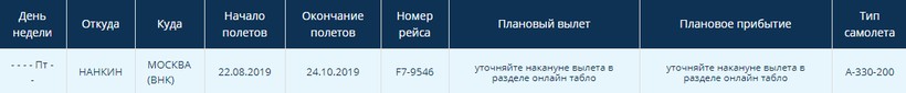 Рейс сезонный, вылеты есть с августа по 24 октября 2019 г.