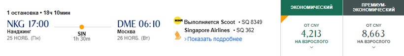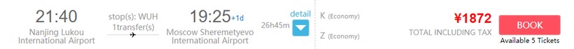Прямой рейс из Нанкина в Москву выполняет только iFly, остальные авиакомпании летают со стыковками. Добраться можно со следующими операторами: