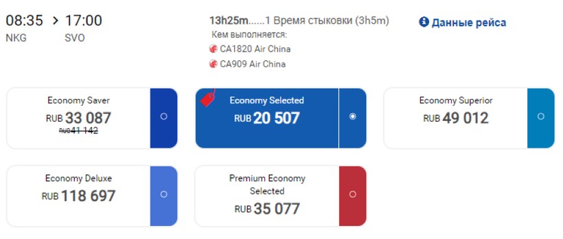 Самый быстрый вариант предлагает компания Air China. У нее по расписанию предусмотрено два рейса, я выбрала утренний, потому что он долетает до Москвы всего за 13,5 часа.