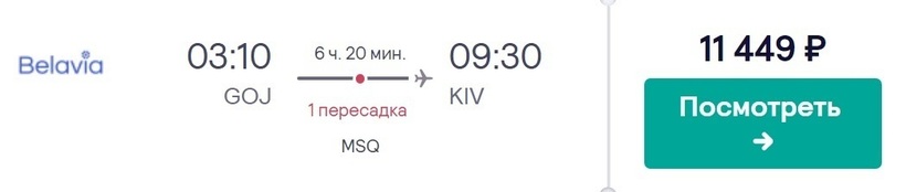 Стоимость перелета в одну сторону по маршруту Нижний Новгород — Минск — Кишинев составляет 11500 рублей (минимальная цена за месяц). Дорога до места назначения займет 6,5 ч., из них на стыковку в столице Беларуси уйдет около 3 ч.