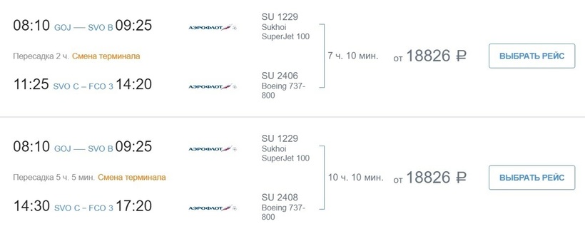 Советую летать в Рим с «Аэрофлотом». Да, если рассматривать перелет только в одну сторону, то цена у перевозчика не выглядит привлекательной. Но я всегда беру билеты туда-обратно и прилично экономлю. Плюс ведущий российский авиаоператор предлагает много вариантов перелетов. Можно выбрать удобное время отправления. Например, вылететь утром из Нижнего Новгорода, потратить на стыковку в Шереметьево 2 часа и после обеда уже оказаться в Риме (по местному времени). На дорогу в таком случае уйдет 7 часов.