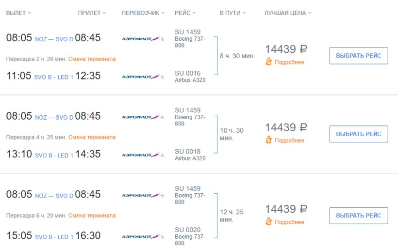 Кроме полета на самолетах S7 или «Аэрофлот», есть и другие комбинации: