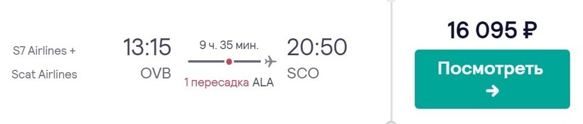 Беспересадочных рейсов до этого казахского города нет, приготовьтесь лететь транзитом. За 9,5 ч. добраться можно на самолетах авиакомпаний S7 и Scat Airlines.