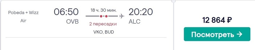 Такой способ попасть в этот испанский город можно рассматривать как более бюджетный. Правда, и на дорогу придется потратить больше времени. Например, полетев с лоукостерами «Победа» и Wizz Air, на месте окажетесь через 18,5 ч. Стоимость авиабилетов приемлемая — от 12800 рублей (за 1,5 месяца и более). Если покупать билет накануне вылета, эта сумма будет в 1,5 раза выше.