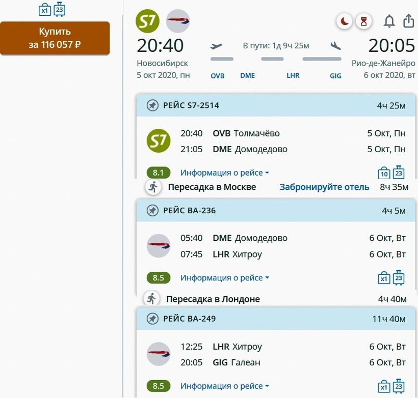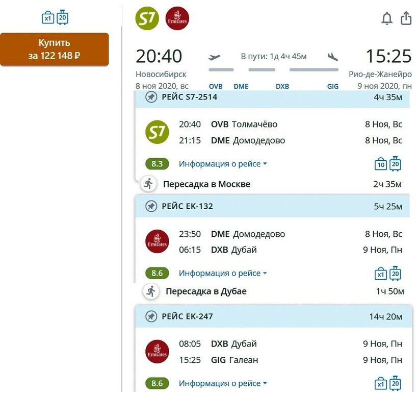 Рейсы Новосибирск — Рио-де-Жанейро осуществляют следующие авиакомпании:
