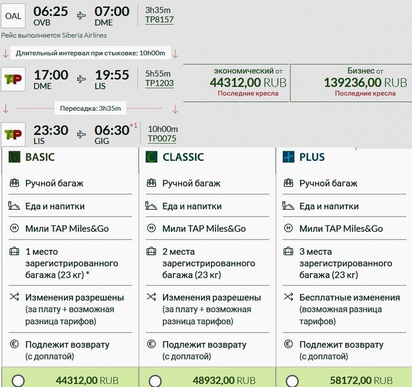 Другие варианты перелета можно посмотреть у авиакомпаний: