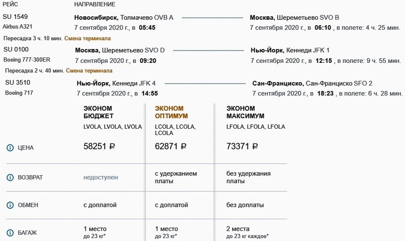 Рейсы Новосибирск — Сан-Франциско осуществляют следующие авиакомпании: