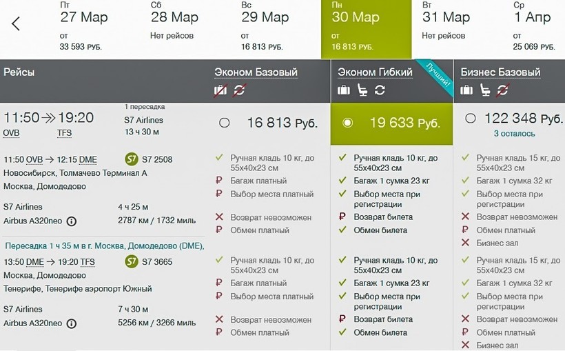 S7 возрастает до 28500–33500 ₽ (с багажом),
