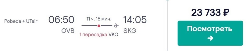 S7 Airlines (S7 5855) | 09:25 Новосибирск (OVB) | 7 ч. 00 мин | 12:25 Салоники (SKG) | вс с 05.06 по 23.10 |