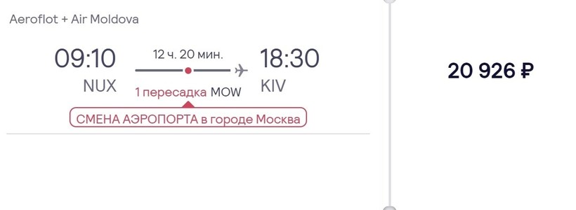 В столицу Молдовы из Нового Уренгоя есть возможность попасть только транзитом, прямое авиасообщение между городами отсутствует. Потратив на дорогу 12,5 ч., до места назначения доберетесь, заплатив за билеты минимум 21000 рублей (цена актуальна за месяц и более до вылета). Авиаоператоры: «Аэрофлот» и Air Moldova.