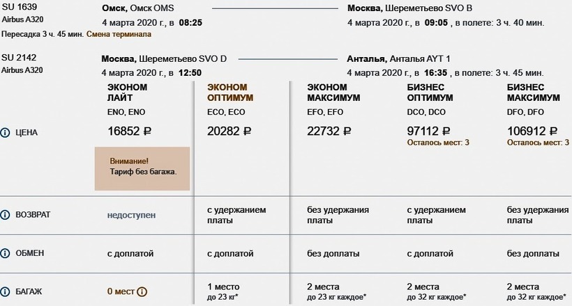 с багажом — в 13500–17500 ₽. Если бронировать