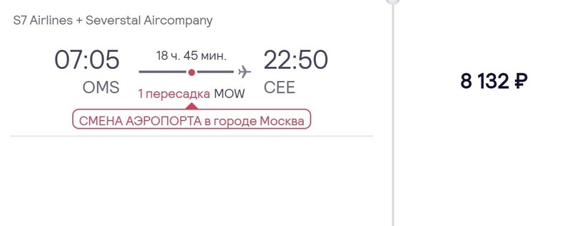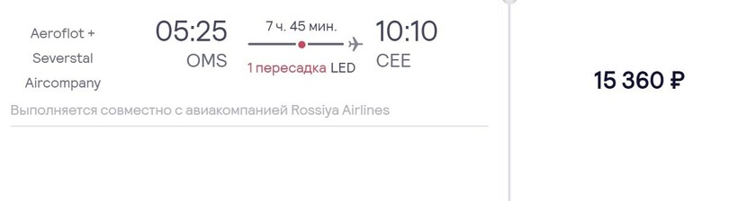 Перелет выполняют «Аэрофлот» (по факту полетите на крыльях авиакомпании «Россия») и «Северсталь».