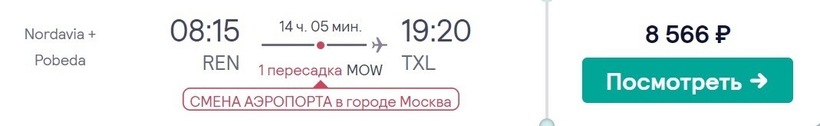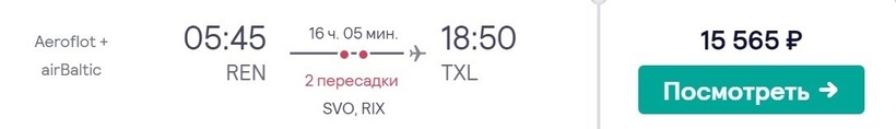 Билеты по приемлемым ценам на рейсы с двумя стыковками за месяц и более до поездки найти вполне реально. Таким способом попасть в Берлин советую пользоваться только в том случае, если на нужные даты не останется дешевых билетов на рейсы с одной пересадкой. Например, можете рассмотреть авиапутешествие с авиакомпаниями «Аэрофлот» и airBaltic. Время в пути — 16 часов. На стыковки в Москве и Риге в общей сложности потратите около 10 часов. Обе воздушные гавани в городах пересадок обладают всем необходимым, чтобы комфортно провести здесь время в ожидании следующего авиарейса. Стоимость билета за месяц и более составляет минимум 15500 рублей. Вариант перелета доступен ежедневно.