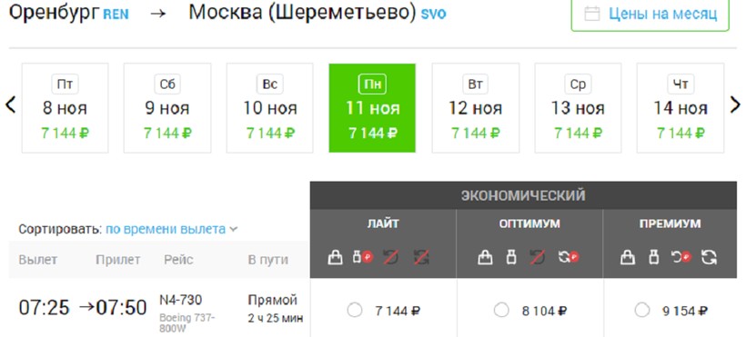 | Nordwind (N4 78) Boeing 737-800 | 20:10 Оренбург (REN) | 2 ч. 30 мин | 20:40 Москва (SVO) | 28, 29, 31 октября, 4, 5, 7, 11, 12, 14, 18, 19, 21, 26, 28 ноября, 3, 5, 10, 12, 17, 19 декабря, … |