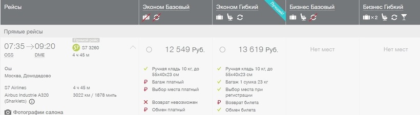 | Аэрофлот (SU 1895) Airbus A321 | 09:50 Ош (OSS) | 4 ч. 50 мин | 11:40 Москва (SVO) | пн, ср, сб, вс с 27.10 по 12.01 |