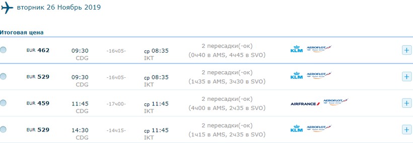 Нидерландская авиакомпания летает из французской столицы до Иркутска транзитом через амстердамский аэропорт Схипхол и московский Шереметьево.