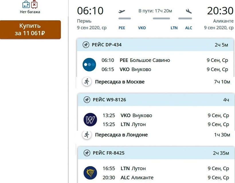 Другие варианты перелета можно посмотреть у авиакомпаний: