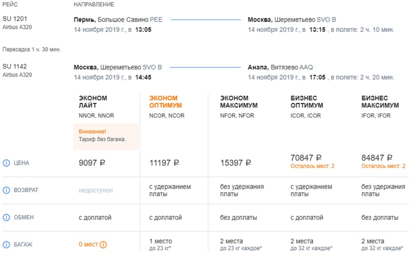 Что касается бизнес-класса, компания предлагает его только на отрезке пути Москва — Анапа, а из Перми в российскую столицу придется лететь в классе эконом. Авиабилет будет стоить от 30000 ₽.
