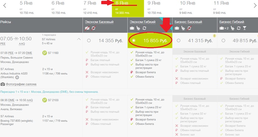 Несмотря на то, что у S7 Airlines нет преимущества перед «Аэрофлотом» в стоимости, я иногда выбираю полеты с этим оператора, потому что у него билеты по тарифу «Гибкий» с багажом можно обменять бесплатно (в отличие от предыдущего перевозчика). Перелет только туда обходится от 11000 ₽, в обе стороны — от 19500 ₽.
