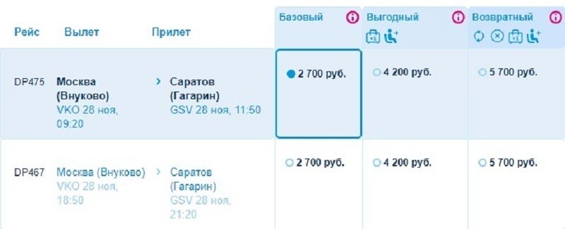 «Оптимум Эконом» — включен багаж, платный выбор места и возможность обмена билета;