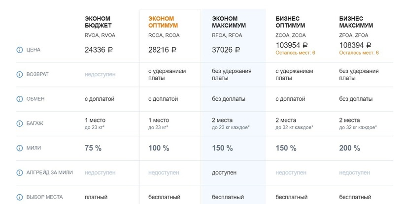 «Оптимум». Разница в стоимости по сравнению с предыдущим авиатарифом — примерно 20%. Есть возможность вернуть авиабилет со штрафом.