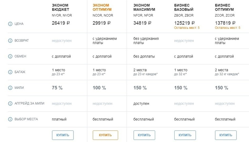 «Оптимум». Также полетите с ручной кладью и багажом. Дополнительная опция — бесплатный выбор места в салоне воздушного судна. Возврат билета разрешен только за дополнительную плату.