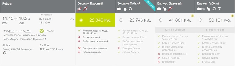 Что касается бизнес-класса, то проездные туда-обратно за несколько недель до вылета можно купить за 88 тысяч (это примерно на 5% дороже, чем у S7).