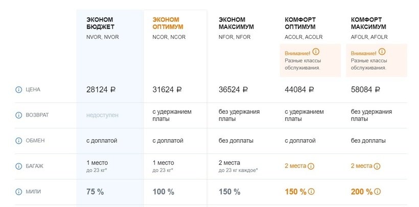 «Бюджет». Багаж в стоимость включен (1 место до 23 кг). Невозвратный, то есть если планы у вас изменятся, потеряете все деньги. Выбор места за дополнительную плату.