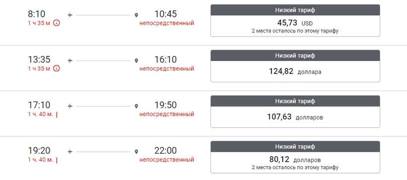 Другие варианты перелета можно посмотреть у авиакомпаний: