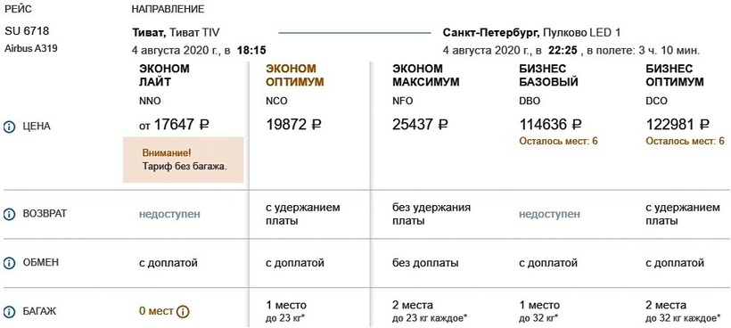 ₽, в обе стороны — от 24000 ₽. Бизнес-класс