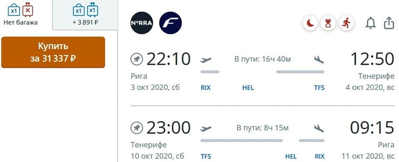 Air Baltic (BT 1761) Airbus A220-300 | 07:40 Рига (RIX) | 6 ч. 40 мин | 12:20 Тенерифе (TFS) | 25 октября |