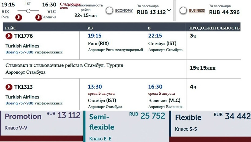 ниже на 1500 ₽, чем у Turkish Airlines, на 2000 ₽,