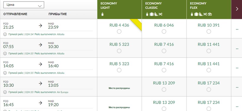 Также есть разные категории бизнес-класса, но я их не рассматриваю, так как не считаю целесообразным платить больше 29000 рублей за такой короткий перелет.