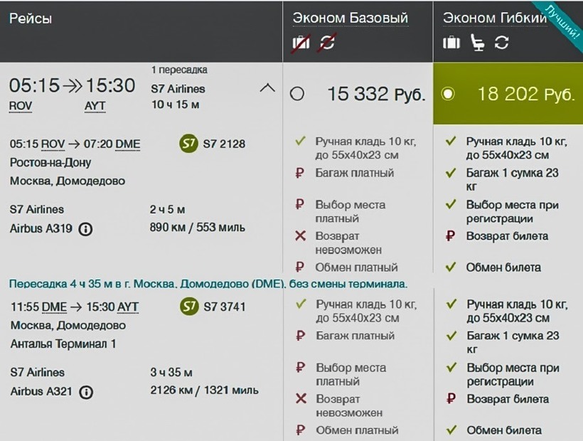 Другие варианты перелета можно посмотреть у авиакомпаний: