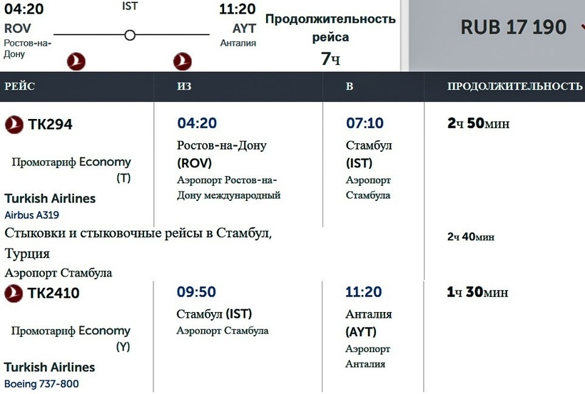 (включая пересадку в Стамбуле в