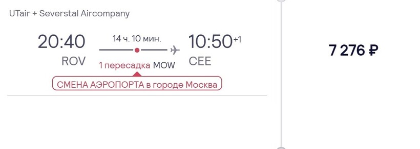 Транзитных рейсов в этот населенный пункт достаточно (прямое авиасообщение отсутствует). Расскажу только про самые актуальные варианты. Авиаоператоры «Ютэйр» и «Северсталь» доставят до места назначения за 14 часов. Пересадка в Москве длительная — около 11,5 ч. (со сменой авиаузла). Первый рейс выполняет «Ютэйр». Хаб авиаоператора в столице РФ — аэропорт Внуково. Второй вылет будет на лайнере авиакомпании «Северсталь» из аэропорта Шереметьево. Стоимость билета только туда составляет 7200 рублей. Цена актуальна за две недели и более до вылета.
